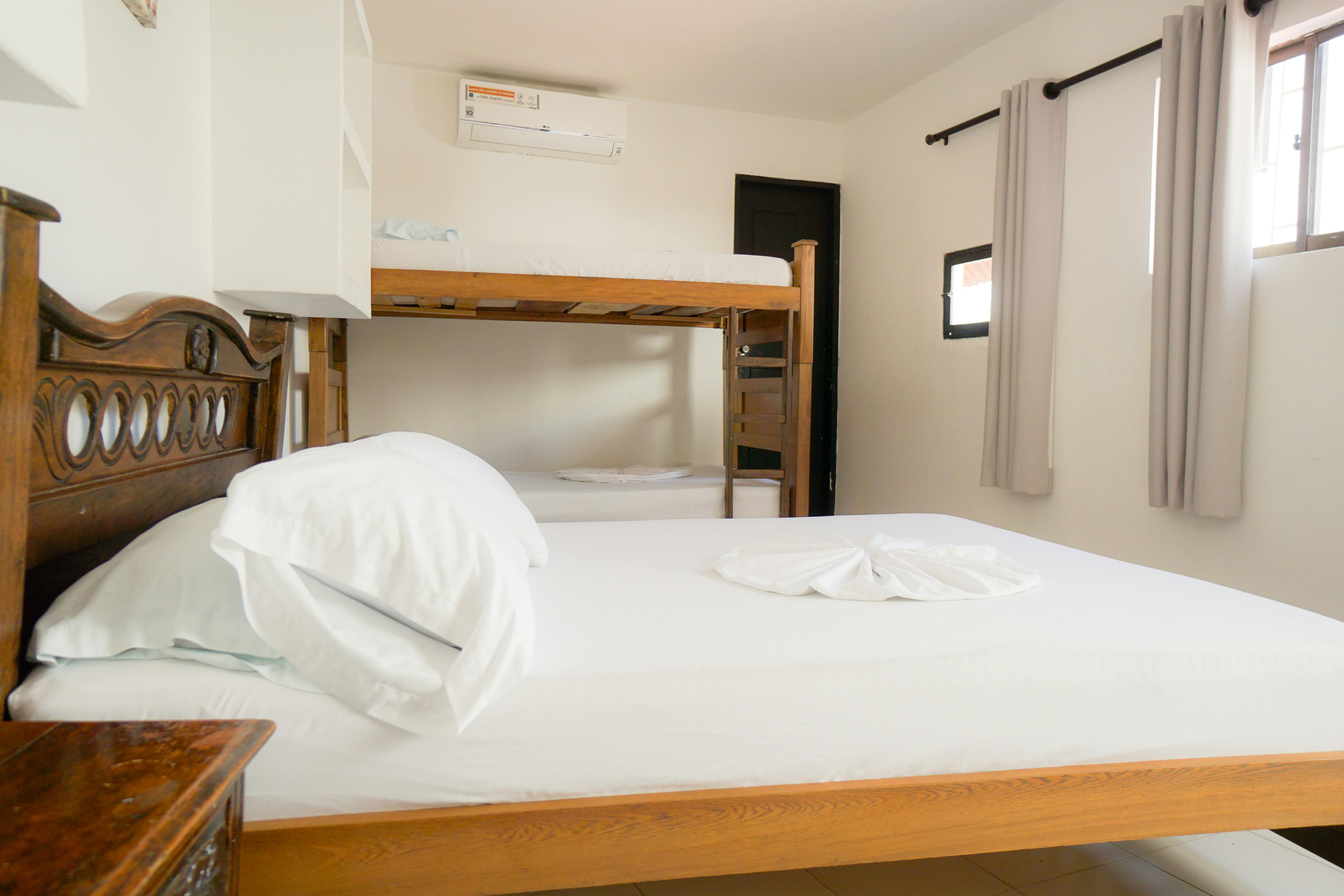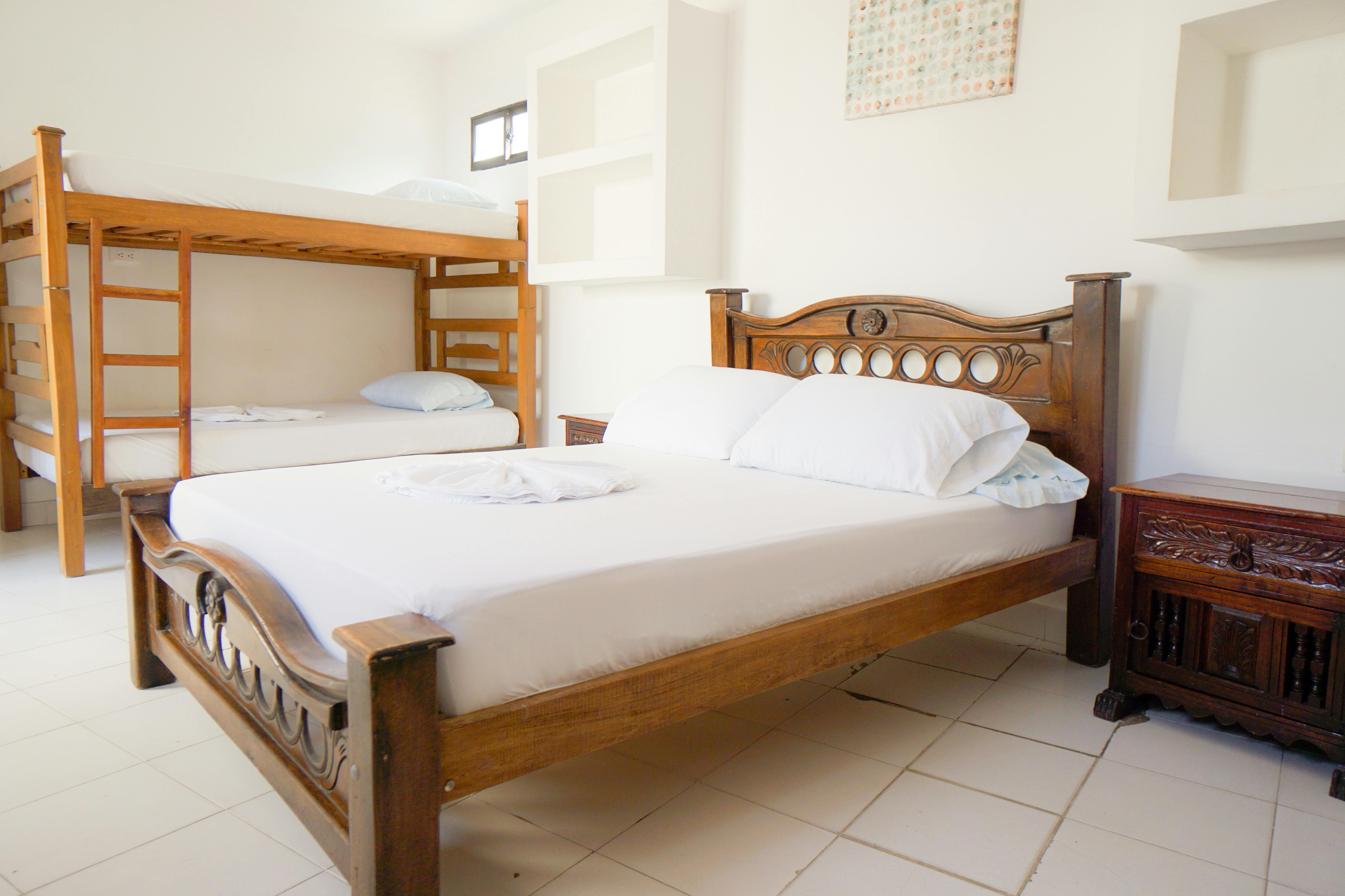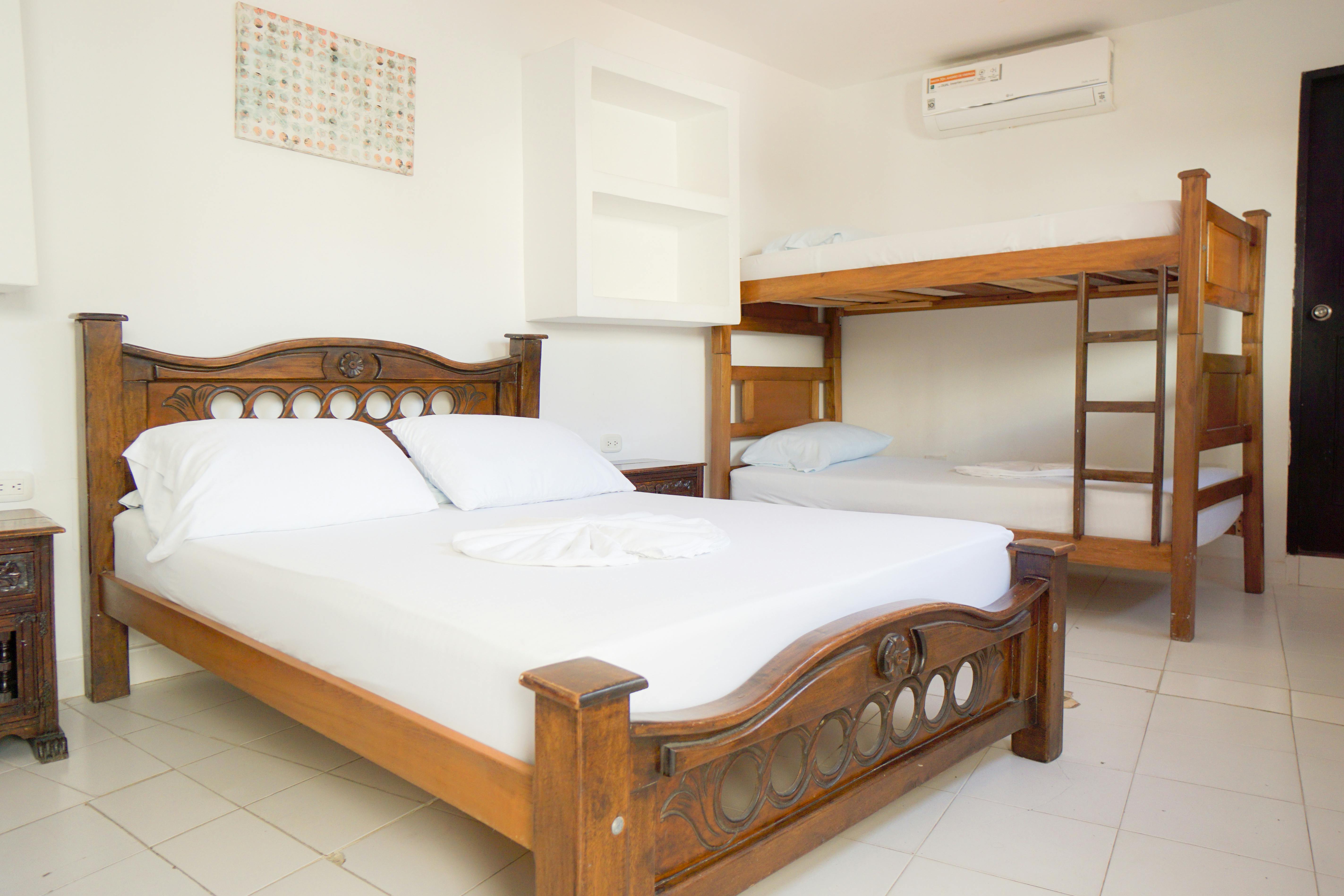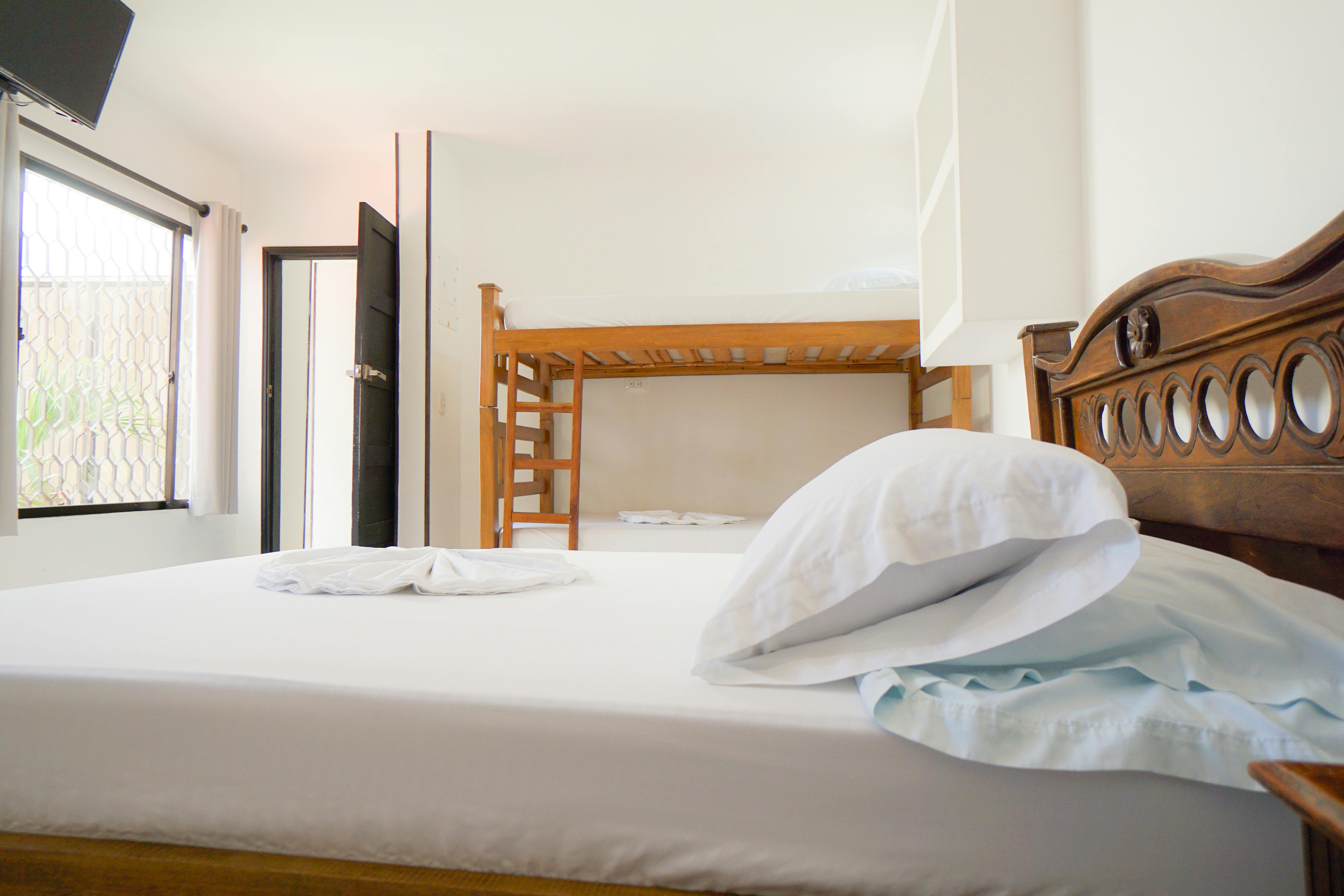 Amplia habitación para un máximo de 6 personas ideal para familias que quieren vivir la experiencia de hospedarse ahorrando y en uno de los mejores y premiados alojamientos de playa Rodadero. Excelente opción para familias. Este tipo de habitación tiene una cama doble o dos camas dobles con 4 o 2 literas, aire acondicionado, baño privado y TV plana de 32". Internet de alta velocidad y Wi-Fi gratis.